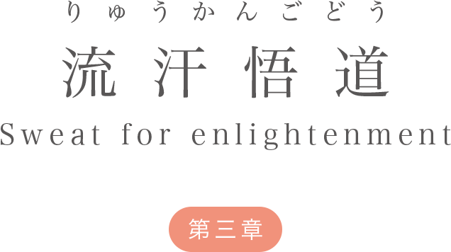 「流汗悟道」……人は汗を流して初めて、大切なことを知る。例えば多くの人の助けを受けて生きていることも、何かに対し一生懸命に取り組まなければ知り得ぬこと。怠惰なままでは、人の心や世の中の道理も理解できないと教える言葉。
